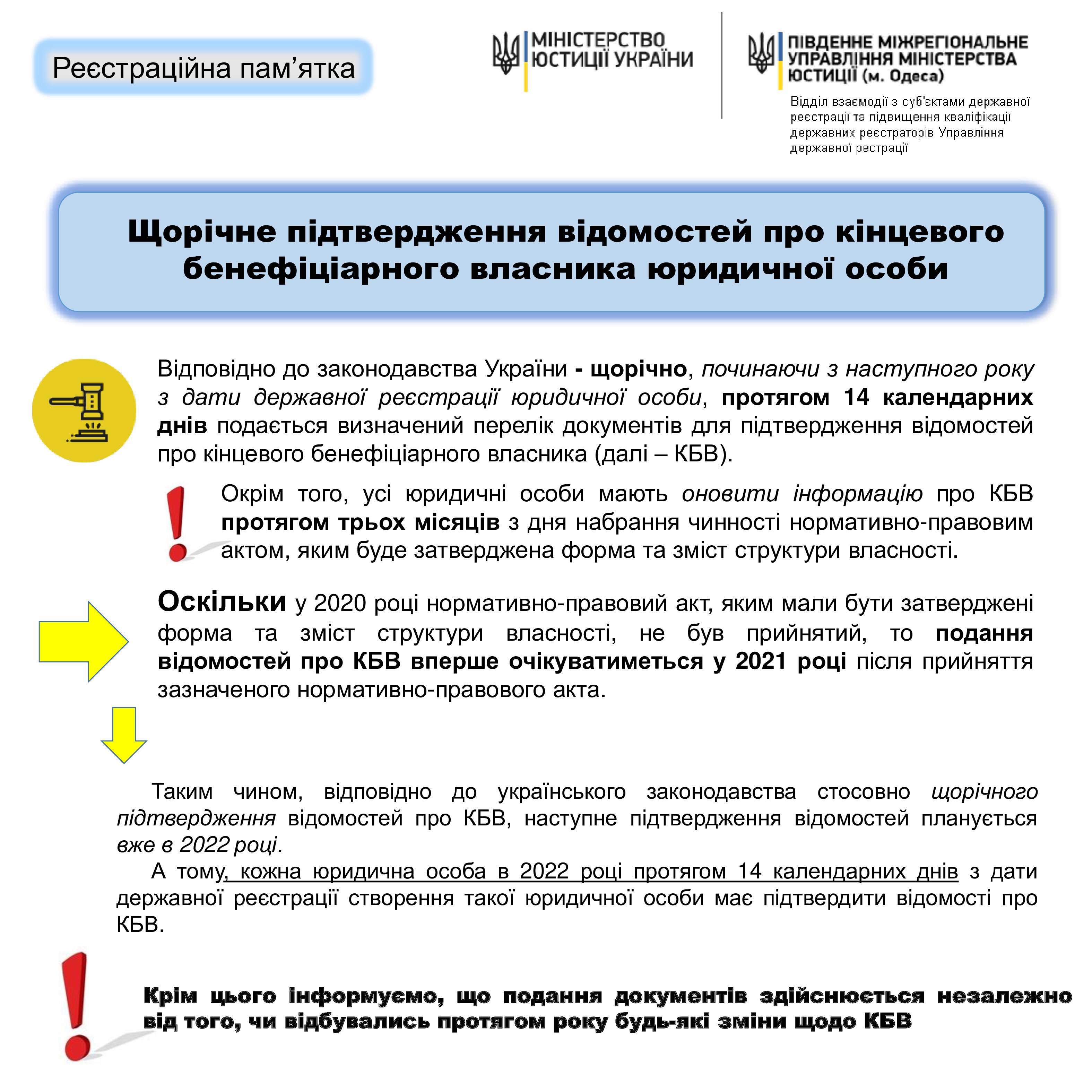 Методичні рекомендації стосовно щорічного підтвердження відомостей про кінцевого бенефіціарного власника юридичної особи
