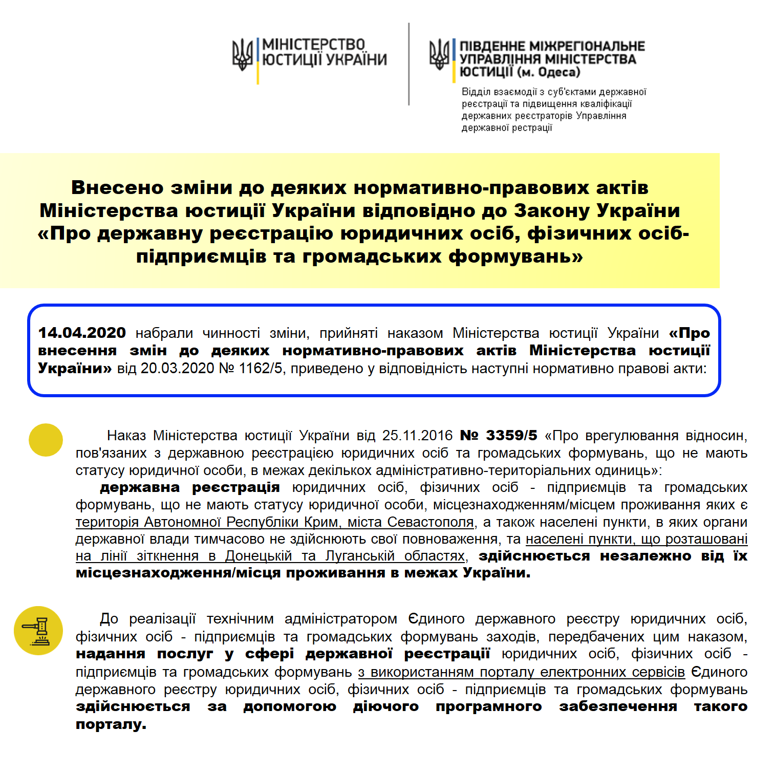 Гарячі телефонні лінії Одеського міжрегіонального управління Міністерства юстиції України
