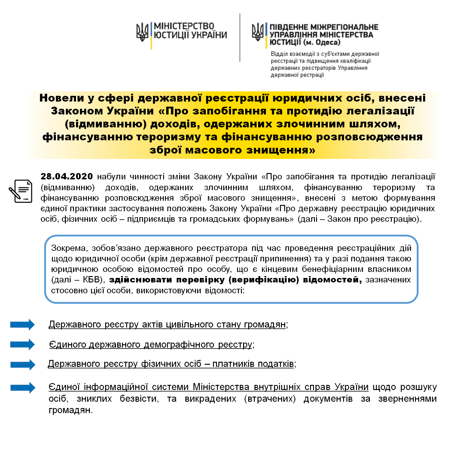 Методичні рекомендації щодо новел у сфері державної реєстрації юридичних осіб, фізичних осіб-підприємців, внесені Законом України «Про запобігання та протидію легалізації (відмиванню) доходів, одержаних злочинним шляхом, фінансуванню тероризму та фінансув