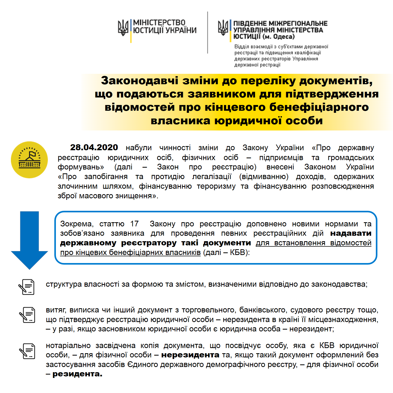 Методичні рекомендації щодо законодавчих змін до переліку документів, що подаються заявником для підтвердження відомостей про кінцевого бенефіціарного власника