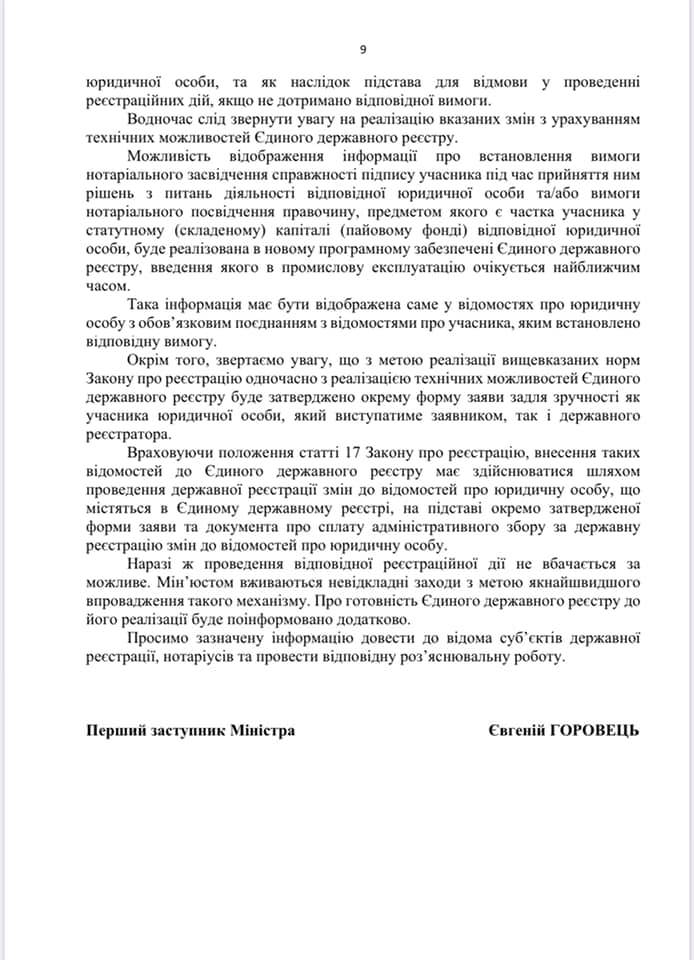 Лист Міністерства юстиції України від 20.07.2020 №5829/8.4.1/32-20 щодо новел в законодавстві України у сферах державної реєстрації речових прав та бізнесу , які набрали чинності 16.07.2020