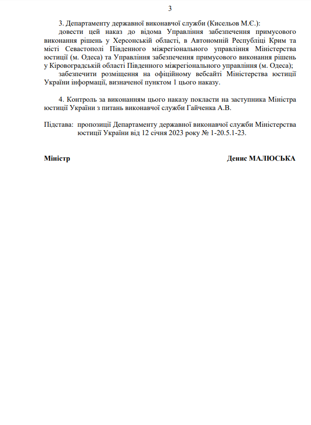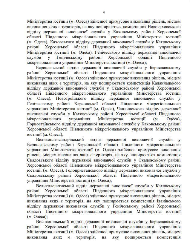 Покладання повноважень примусового виконання рішень, місцем виконання яких є Автономна Республіка Крим та місто Севастополь, на відділ примусового виконання рішень Управління забезпечення примусового виконання рішень у Херсонській області, в Автономній Республіці Крим та місті Севастополі на Південне міжрегіональне управління Міністерства юстиції (м.Одеса)