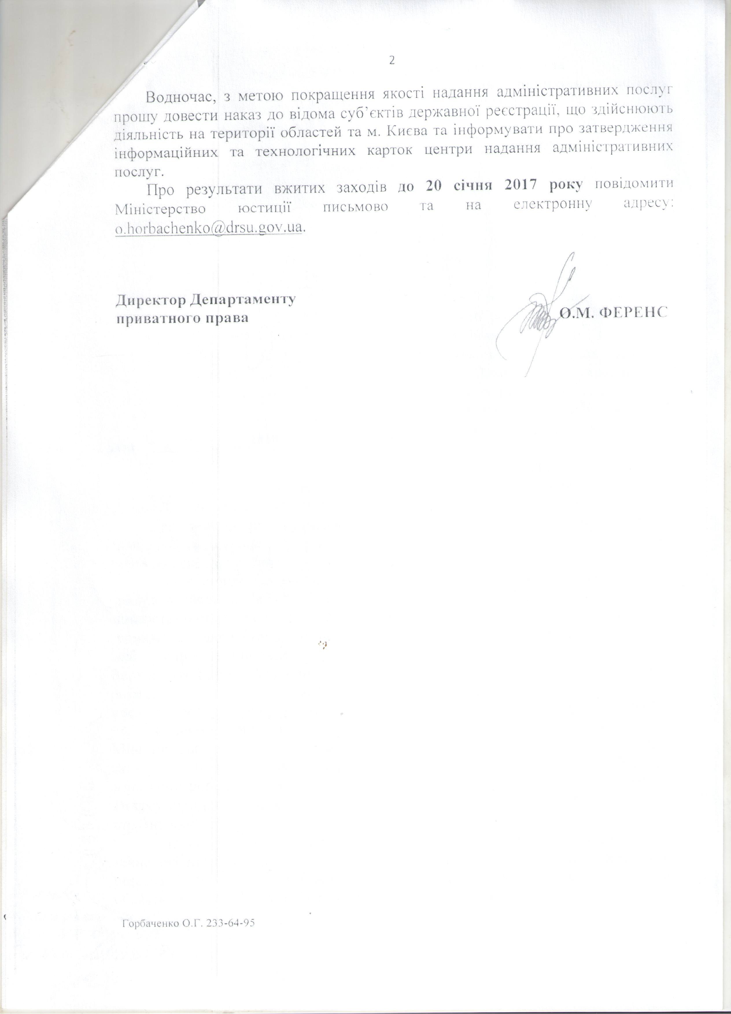 Лист Міністерства юстиції України від 29.12.2016 № 179/8.4/32-16 щодо законодавчих змін у сфері державної реєстрації, відповідно до яких адміністративний збір справляється у відповідному розмірі від прожиткового мінімуму для працездатних осіб