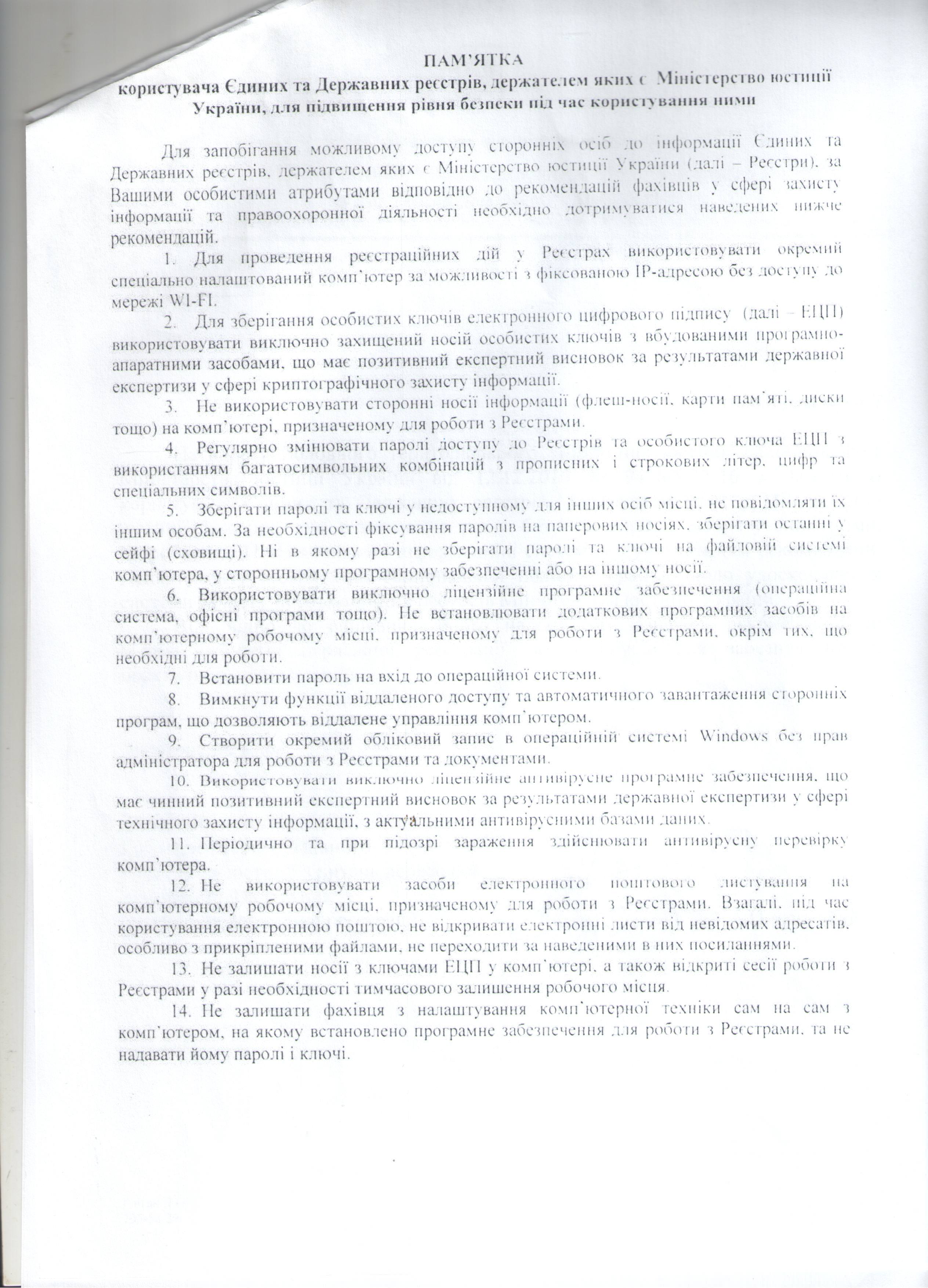 Лист Міністерства юстиції України від 12.12.2016 № 9456/8/32-16 щодо використання в роботі суб’єктів державної реєстрації та нотаріусів Пам’ятки користувача Єдиних та Державних реєстрів, держателем яких є Міністерство юстиції України